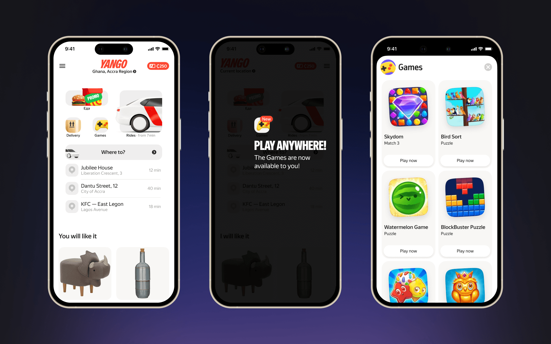 I designed an approach to embedding web games into the super app Yandex GO. Two iterations of experiments were conducted. The results were OK, but there were some management issues.